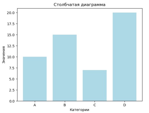 Tutaj categories i values reprezentują etykiety kategorii i odpowiednie wartości do budowy słupków.