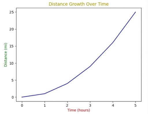 plt.title('Crescimento da distância ao longo do tempo', color='gold')