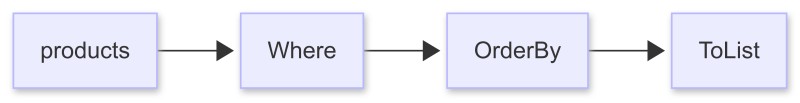 Where, OrderBy, and ToList are LINQ extension methods, each returning a new data set you can keep working with.