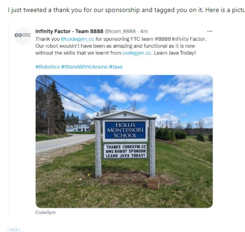 Một trường học ở Mỹ thậm chí còn treo một bảng cảm ơn CodeGym ngoài phố gần tên trường.