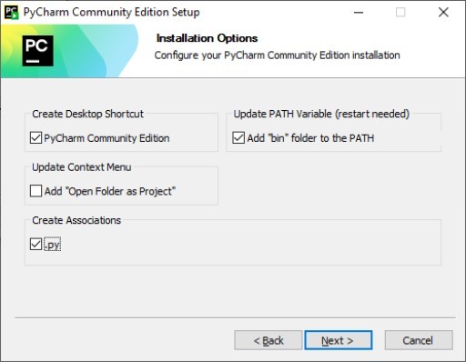 步骤 2。建议勾选在桌面创建快捷方式和关联 .py 格式文件的选项。